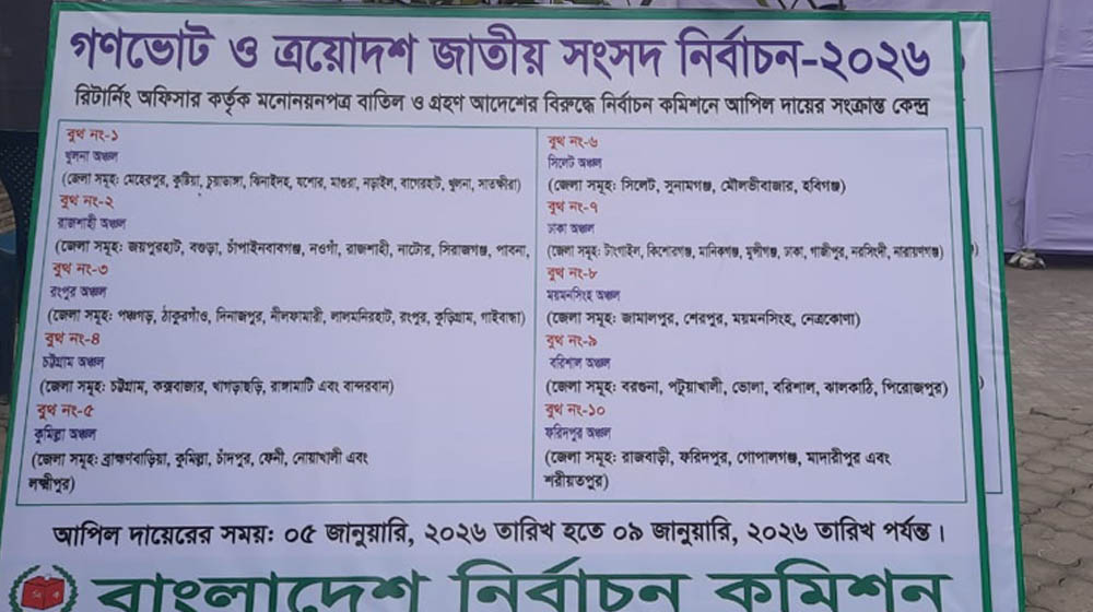 ইসি আরও জানিয়েছে, শুনানি শেষে রায়ের ফলাফল মনিটরে প্রদর্শন করা হবে এবং সংশ্লিষ্টদের ই-মেইলে পিডিএফ কপি পাঠানো হবে। পাশাপাশি নির্বাচন ভবনের অভ্যর্থনা ডেস্ক থেকেও রায়ের অনুলিপি সংগ্রহ করা যাবে। ১০–১২ জানুয়ারির রায়ের কপি ১২ জানুয়ারি, ১৩–১৫ জানুয়ারির রায় ১৫ জানুয়ারি এবং ১৬–১৮ জানুয়ারির রায় ১৮ জানুয়ারি বিতরণ করা হবে।