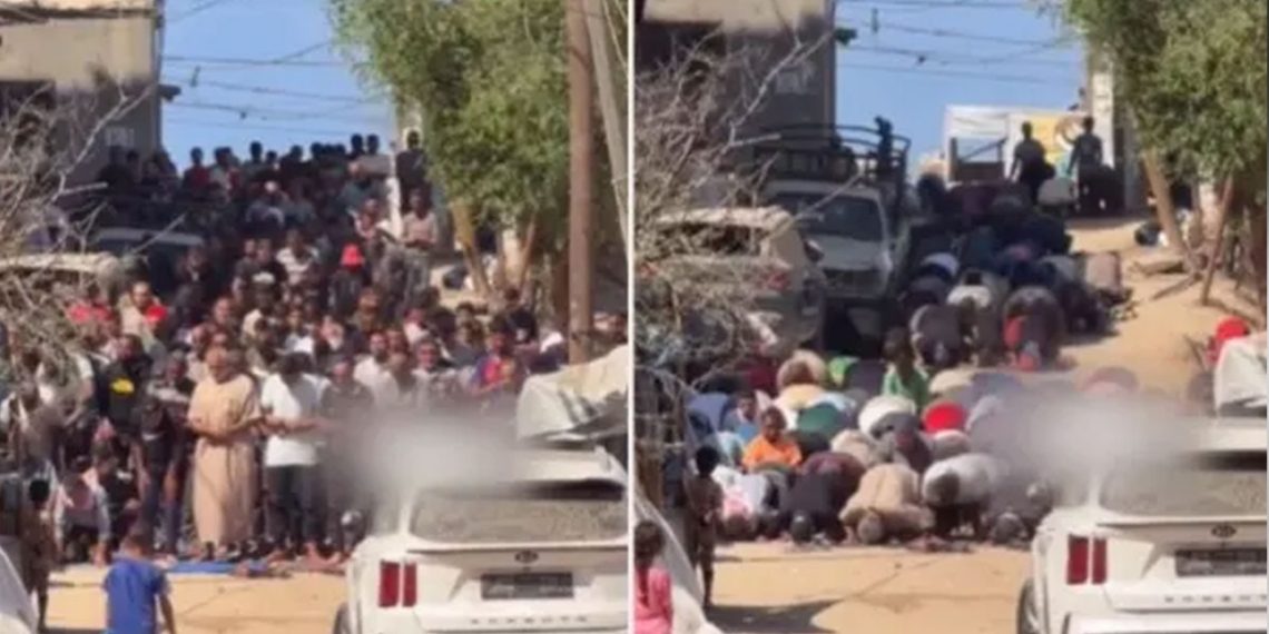 নামাজে অংশ নেওয়া হাজারো মানুষ স্বজন হারানোর বেদনা ও ধ্বংসস্তূপের মাঝে দাঁড়িয়ে আল্লাহর কাছে শান্তি ও স্থায়ী নিরাপত্তার প্রার্থনা করেন।