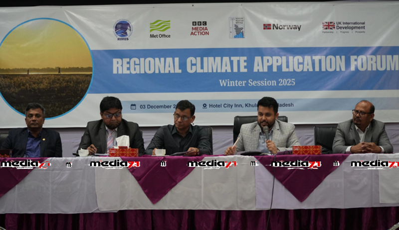 জলবায়ু ঝুঁকিপূর্ণ দেশ হিসেবে বাংলাদেশে বন্যা, জলোচ্ছ্বাস ও চরম আবহাওয়ার ঝুঁকি ক্রমবর্ধমান। এই প্রেক্ষাপটে মৌসুমী পূর্বাভাসের ব্যবহার জোরদার করতে খুলনার সিটি ইন হোটেলে বুধবার অনুষ্ঠিত হলো আঞ্চলিক ‘ক্লাইমেট অ্যাপ্লিকেশন ফোরাম-২০২৫’ (শীতকালীন সেশন)। বাংলাদেশ আবহাওয়া অধিদপ্তরের উদ্যোগে এবং RIMES, কেয়ার বাংলাদেশ ও বিবিসি মিডিয়া অ্যাকশনের সহযোগিতায় এই ফোরাম আয়োজন করা হয়।