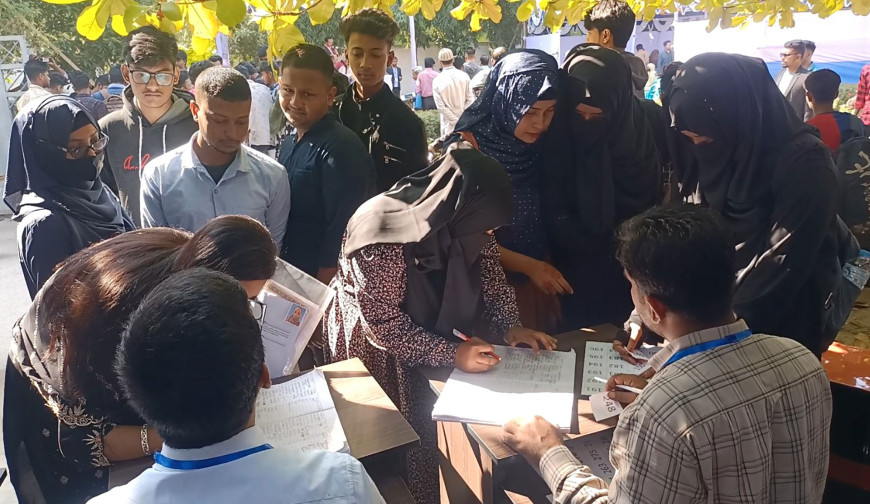 নির্ধারিত সময়ের আগেই যুবকদের পদচারণায় মুখরিত হয়ে ওঠে যশোর টিটিসি চত্বর। নানা রঙের খাম ও ফাইলে সযত্নে রাখা জীবনবৃত্তান্ত নিয়ে সকাল থেকেই ভিড় করেন চাকরিপ্রার্থীরা। প্রস্তুতি নিয়ে আসতে না পারা অনেকে আশপাশেই বসে হাতে-হাতেই সিভি তৈরি করে জমা দেন পছন্দের প্রতিষ্ঠানের নির্ধারিত বক্সে। রেজিস্ট্রারে নাম লেখানোর পর অপেক্ষা শুরু হয় কাক্সিক্ষত সেই সাক্ষাৎকার ডাকার। চাকরি মেলায় আগতদের কাছে এটি শুধু একটি অনুষ্ঠান নয়, বরং তাদের স্বপ্নপূরণের অভিযাত্রা। দীর্ঘদিনের বেকারত্বে হতাশ বহু তরুণের কাছে মেলাটি নতুন আশার আলো হয়ে আসে।