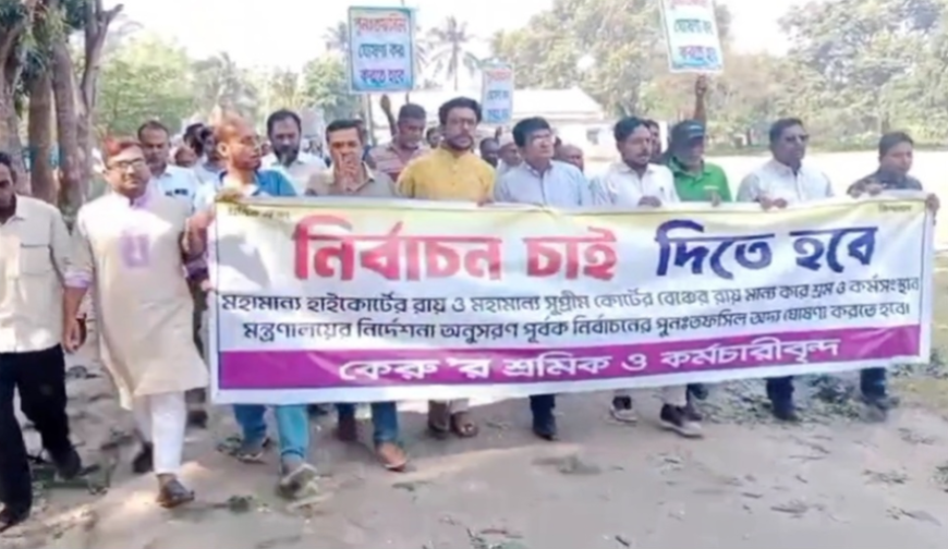চুয়াডাঙ্গার দর্শনা কেরু অ্যান্ড কোম্পানি শ্রমিক ও কর্মচারী ইউনিয়নের নির্বাচনের দাবিতে বিক্ষোভ মিছিল, সমাবেশ ও মানববন্ধন কর্মসূচি অনুষ্ঠিত হয়েছে। মঙ্গলবার (১১ নভেম্বর) দুপুরে কোম্পানির প্রধান ফটকের সামনে এ কর্মসূচি পালন করেন শ্রমিক-কর্মচারীরা। এতে শতাধিক শ্রমিক-কর্মচারী অংশ নেন।