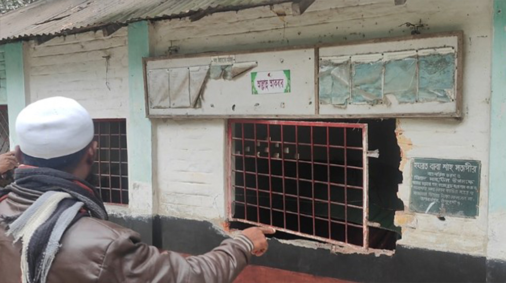 ঠাকুরগাঁও শহরে রাতের আঁধারে ‘হযরত বাবা শাহ সত্যপীর মাজার’ ভাঙচুরের ঘটনা ঘটেছে। এ ঘটনার পর থেকে এলাকায় উত্তেজনা বিরাজ করছে। শুক্রবার (২৬ ডিসেম্বর) রাতের কোনো এক সময়ে শহরের সত্যপীর ব্রিজ এলাকায় এ ঘটনা ঘটে বলে জানিয়েছেন ঠাকুরগাঁও সদর থানার ওসি মনির হোসেন।