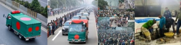 জানাজা প্রস্তুতির প্রাঙ্গণ:- আজ বেলা ২টার সময় জাতীয় সংসদ ভবনের সামনে মানিক মিয়া এভিনিউতে অনুষ্ঠিত হতে যাচ্ছে এই মহীয়সী নারীর নামাজে জানাজা। সকাল থেকেই রাজধানী ঢাকার রাজপথগুলো যেন এক বিষণ্ণ শোকের মিছিলে রূপ নিয়েছে। জিয়া উদ্যান থেকে শুরু করে সংসদ ভবন এলাকা ছাড়িয়ে জনস্রোত আছড়ে পড়ছে আশপাশের প্রতিটি অলিতে-গলিতে। লক্ষ লক্ষ মানুষের পদভারে আজ কম্পিত রাজপথ, কিন্তু সবার চোখেমুখেই আজ কেবল প্রিয় নেত্রীকে হারানোর গভীর শোক।